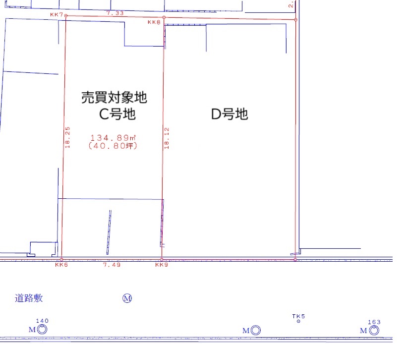 | 17.備考 | ※確定測量済 間口:南側(道路側) 約7.49m・北側 約7.33m 奥行:西側 約18.25m・東側 約18.12m |
